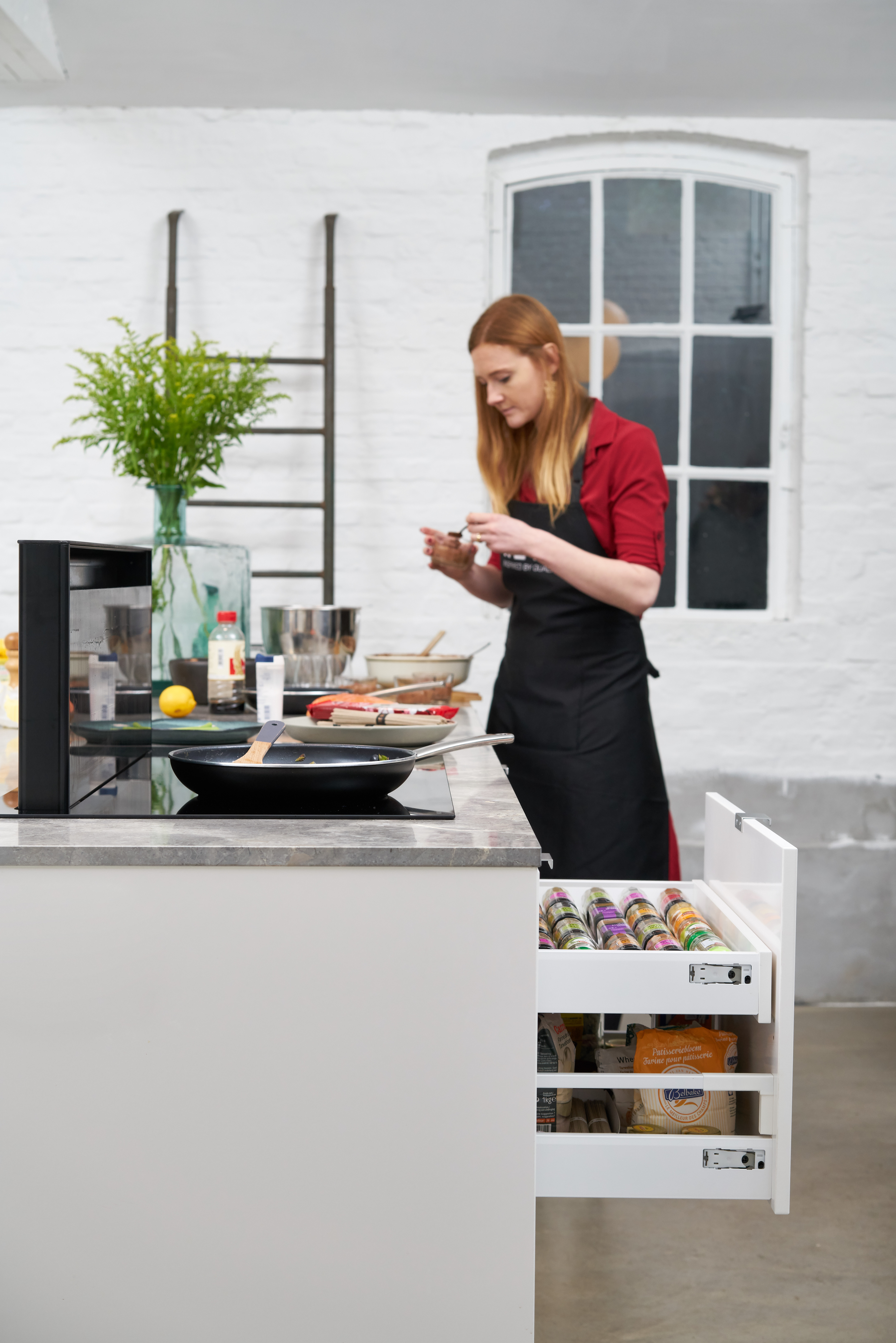 - Kühlschrank (mit dem Mittelteil auf Höhe der Arbeitsfläche)
