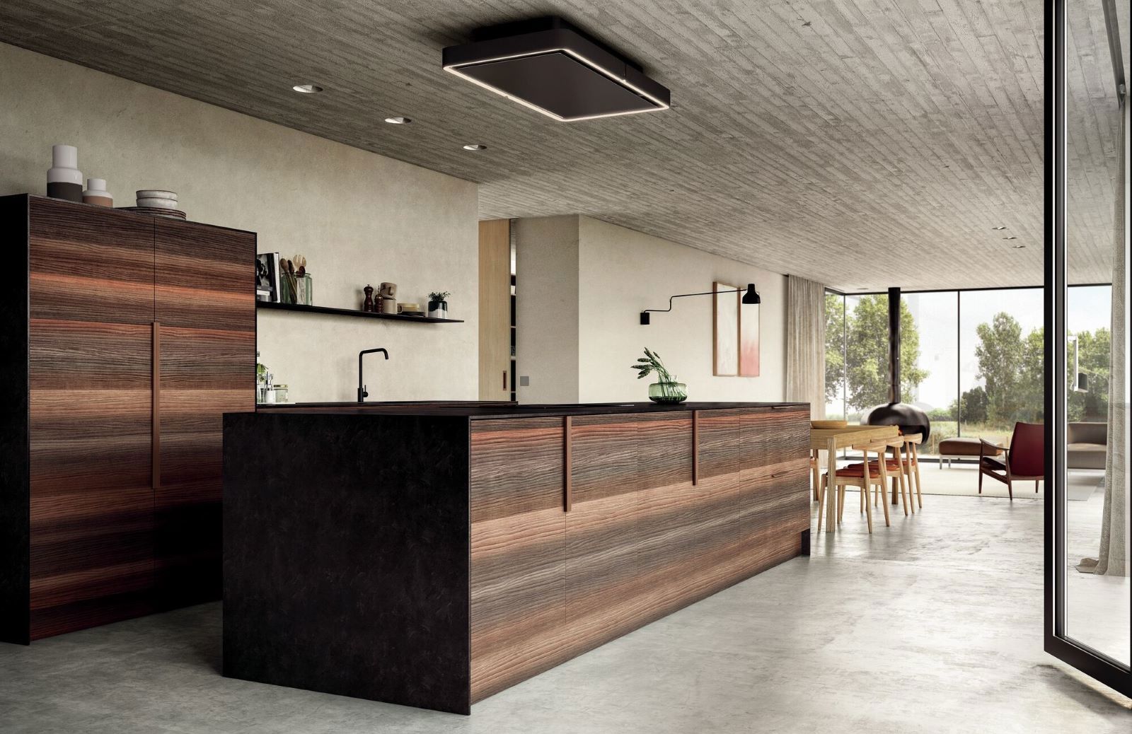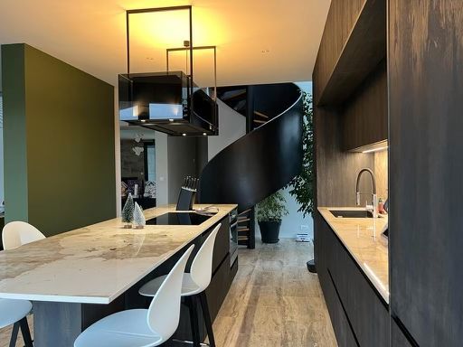 Part of the minimalist kitchen in 2024 are handleless kitchens combined with ceiling-high cabinets. This is because these keep the kitchen calm and uncluttered. The statement pieces and material choices thus get the attention they deserve. The stylish Pureline Pro cooker hood with integrated slimline LED strip integrates seamlessly into this type of kitchen design.